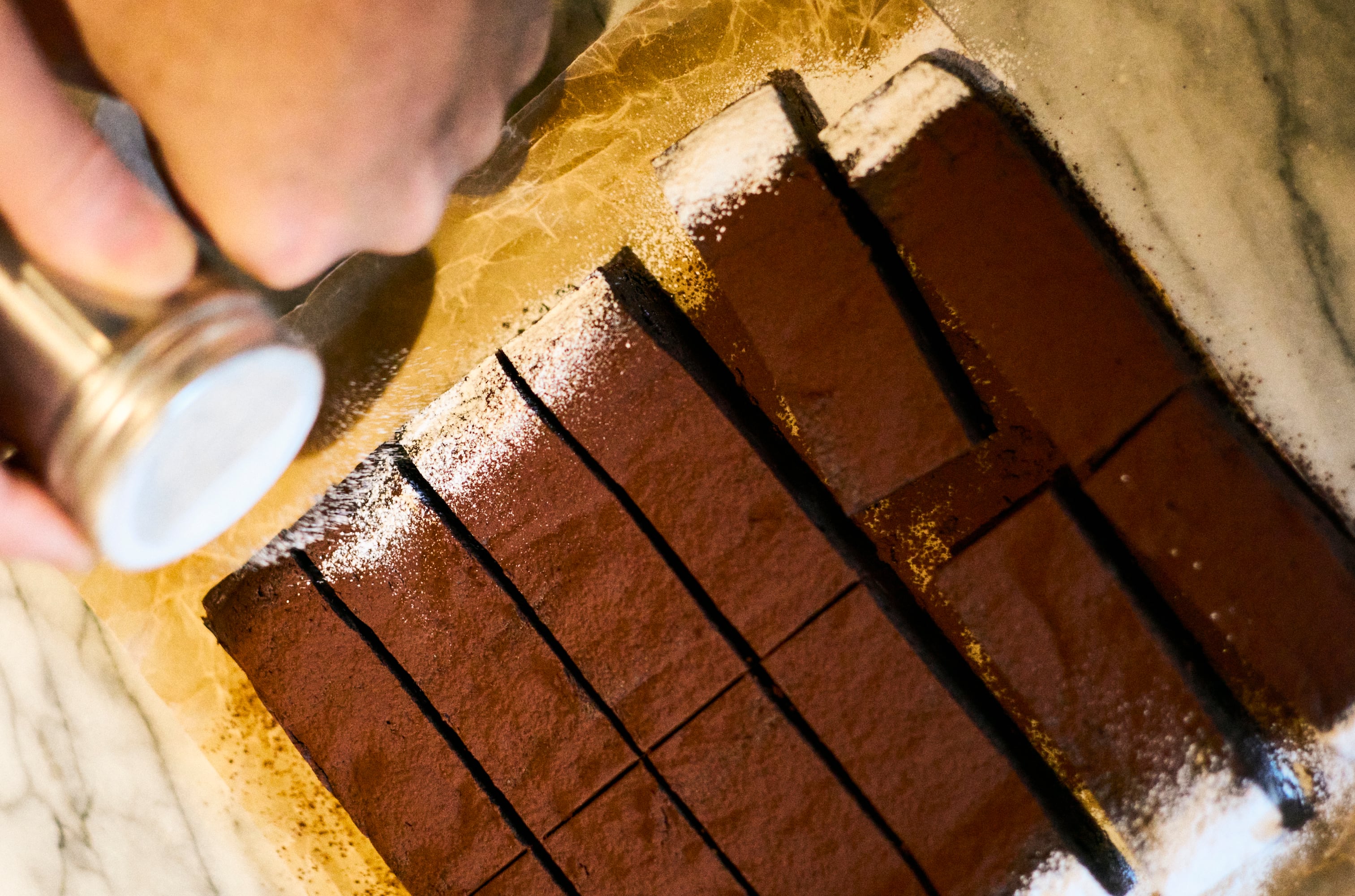 酸味を抑えた濃厚なコクとたっぷりのカカオの味わいがゆっくりと溶けだす、まるで生チョコレートのようなブラウニー。