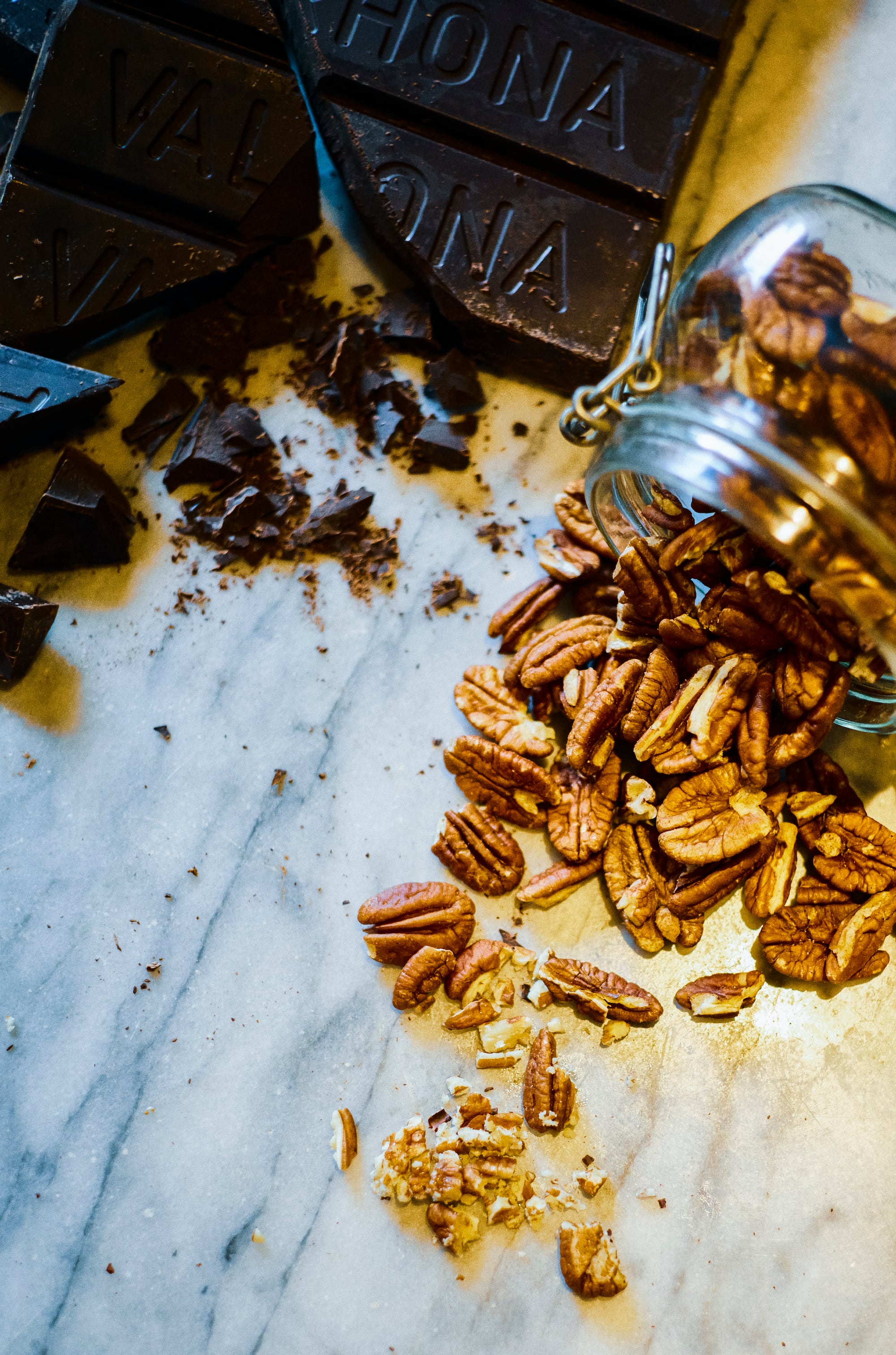 Ingredients: Cocoa mass (Made in French), chicken eggs, organic sugar, butter, beet sugar, cocoa powder, organic pecans, cocoa butter, liqueur, powdered sugar, lecithin (soy-derived), vanilla flavor